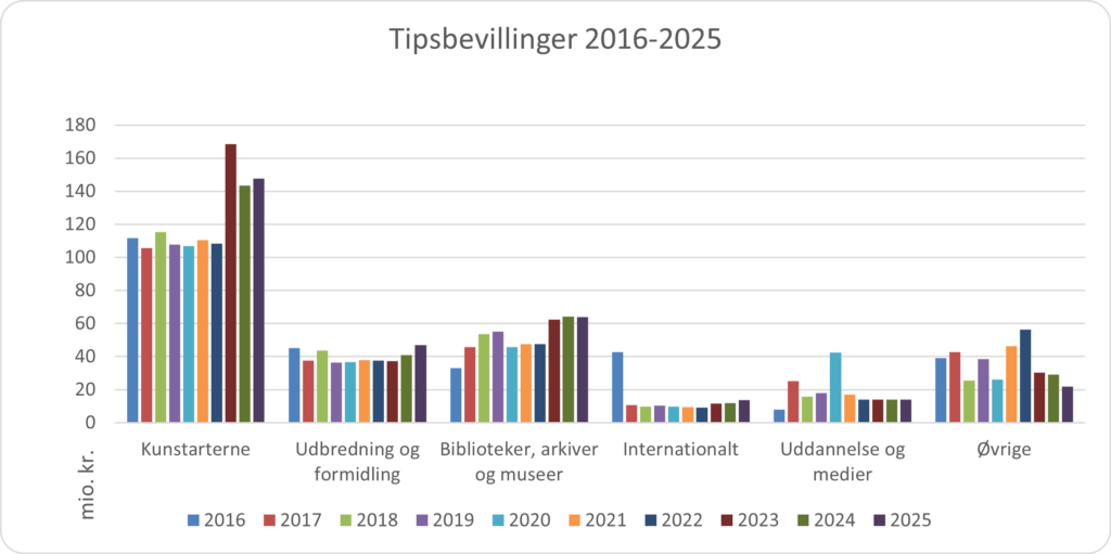 I 2025 har Kulturministeriet som en – ny – service, udarbejdet et notat som viser, hvilke nye bevillinger der er i udlodningsmidlerne for 2025 og hvilke faste bevillinger der er.