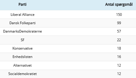 Katrine Daugaard fra Liberal Alliance er uden sammenligning den mest flittige spørger til kulturministeren. I folketingsåret 2024/2025 blev der i alt stillet 482 spørgsmål til kulturministeren. Næsten hvert tredje spørgsmål blev stillet af Liberal Alliance og her var det – ikke overraskende – Katrine Daugaard som tog sig af størstedelen af arbejdet med at formulere spørgsmål til ministeren. I alt […læs videre]