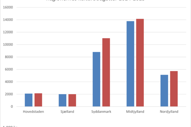 I Region Syddanmark har man øget kulturbudgettet fra 8,8 millioner kr. i 2024 til 11,0 millioner kr. i 2025, svarende til hele 25 procent. I Region Nordjylland har man øget fra 5,1 million kr. til 5,7 million kr. Samlet har regionerne øget kulturbudgetterne fra 2024 til 2025 fra 31,8 million kr. til 35,1 million kr., svarende til en stigning på […læs videre]